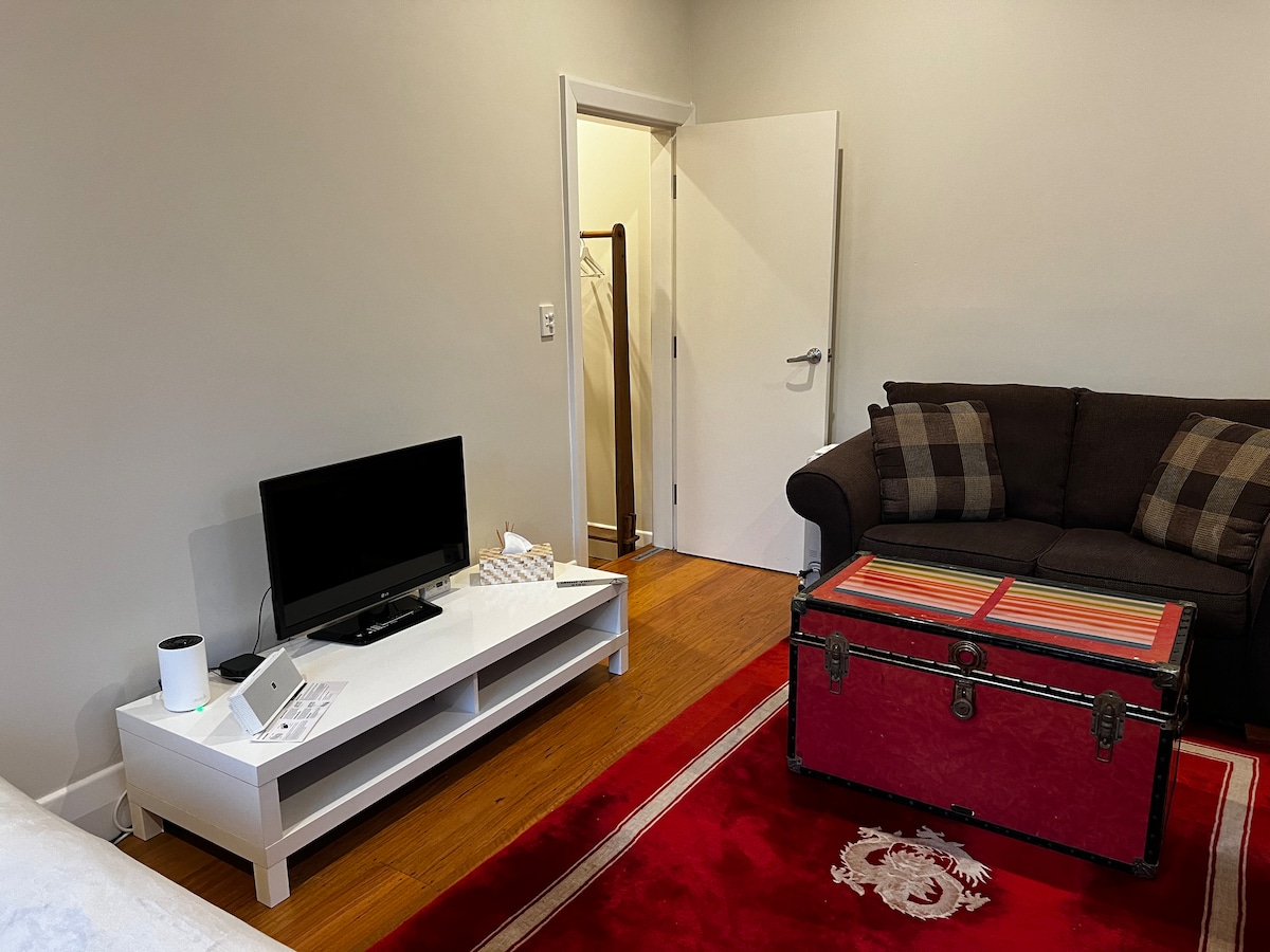 Ovaj privatni studio apartman se nalazi u našoj porodičnoj kući. Garsonjera je površine 25 m2 i ima sopstveni privatni ulaz. Izađite iz sobe u glavni hodnik naše kuće kako biste ušli u privatno kupatilo. Pregrada odvaja vaše kupatilo od ostatka našeg doma radi potpune privatnosti. Imate čajnu kuhinju (bez sudopera) i bračni krevet u suprotnim uglovima sobe, ostavljajući ostatak sobe kao dnevni boravak sa 2 kauča i TV-om. Wi-Fi je izuzetno brz i ima brzinu od 250 mbps