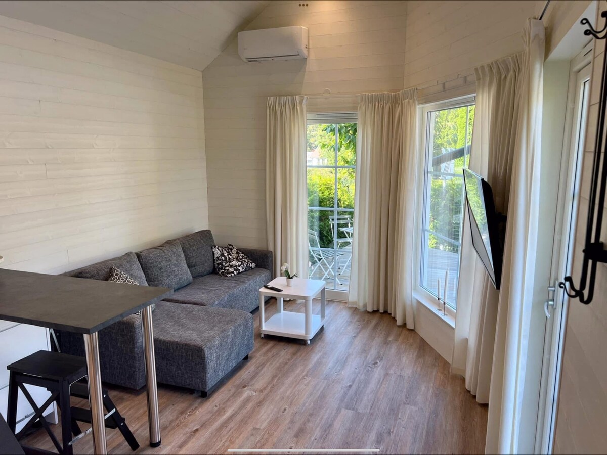 Želite li da otkrijete Stokholm i arquipelago i boravite u lijepom mirnom području. Srdačno dobrodošli u našu minijaturnu kuću od 30 kvadratnih metara sa potpuno opremljenom kuhinjom i modernim kupatilom. Spavajte na udobnom kauču ili udobnom potkrovlju za spavanje. Večerajte za trpezarijskim stolom i izađite napolje i uživajte u kafi na sunčanoj drvenoj terasi sa pogledom na našu prelepu baštu. Uključeni su posteljina i peškiri, pa čak i kafa/čaj. Lokalni voz će vas odvesti u Stokholm za samo 18 minuta. Nema potrebe za kolima.