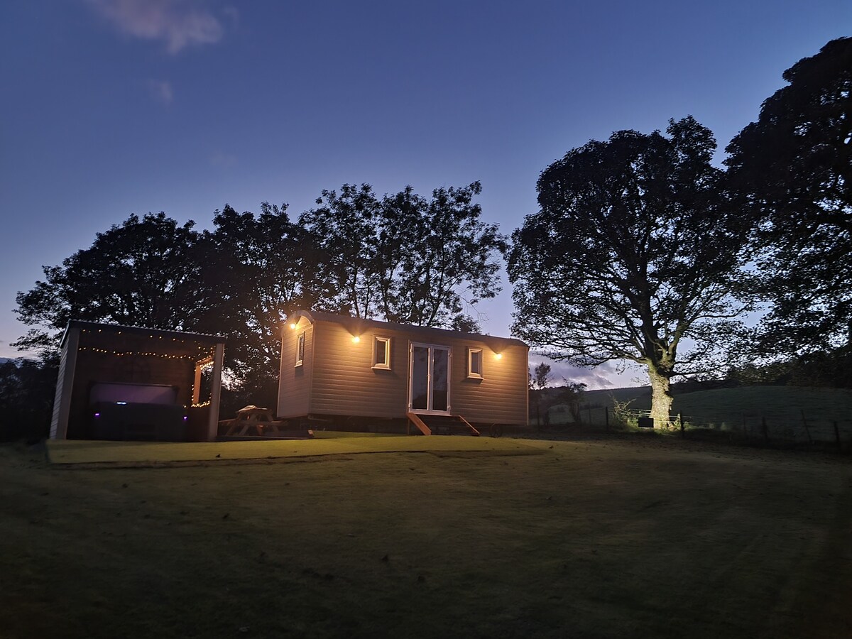 Ova luksuzna pastirska koliba po mjeri ručno je izrađena na licu mjesta i savršena je za opuštajući odmor. Ekskluzivna električna hidromasažna kada prekrivena je drvenim skloništem izrađenim po mjeri za potpunu privatnost i utočište od škotskih vremenskih uslova. The sole hut is located in a small private paddock at the back of our farm in the village of Banton. Uz Wi-Fi, pametni TV, frižider, indukcionu ploču za kuvanje, mikrotalasnu rernu sa rernom, električnim tušem i toplom vodom možete uživati u glampovanju bez žrtvovanja svakodnevnih obaveza.