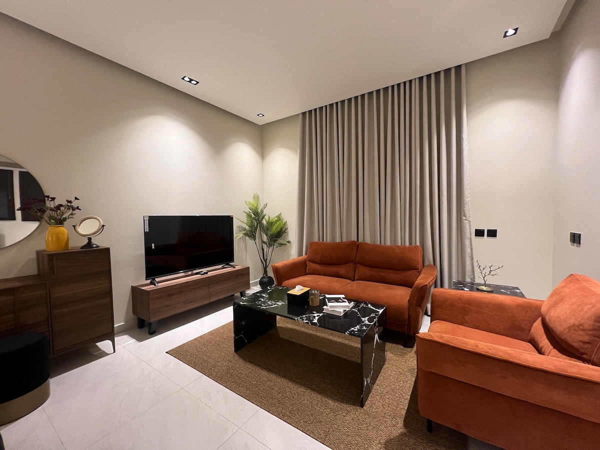 Ovaj stan je dizajniran da vam pruži udobnost, luksuz, moderan namještaj i potpunu privatnost sa samostalnim i nezavisnim ulazom. Nalazi se minut hoda od tržnog centra Al Otaim i 10 minuta od aerodroma Hail i u blizini svih glavnih usluga, restorana i kafića U stanu se nalazi i. Salon, pomoćno vijeće, glavna spavaća soba, tri kupatila i elegantna kuhinja I mašinu za pranje veša TV od 75 inča Stalak za kafu Internet Alati za ličnu njegu i fen za kosu Želimo vam prijatan boravak.