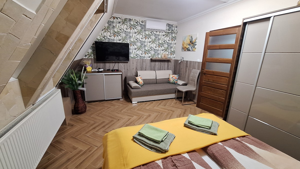 Udoban stan u srcu Debrecina, garantujem da ne možete naći bolju lokaciju u gradu (sve u krugu od 200 m). Površina od 30 m2, samo za vas, potpuno obnovljen 2019. godine, bračni krevet + kauč na razvlačenje za 2 djeteta, samostalna prijava! VAŽNO: Sofa (ono što vidite i na fotografijama) je dovoljna za dvoje djece, a ne za odrasle. Nažalost, to se ne može prikazati na Airbnb-u, tako da će rezervacije koje su ugovorile 4 odrasle osobe biti otkazane. Hvala na razumijevanju!