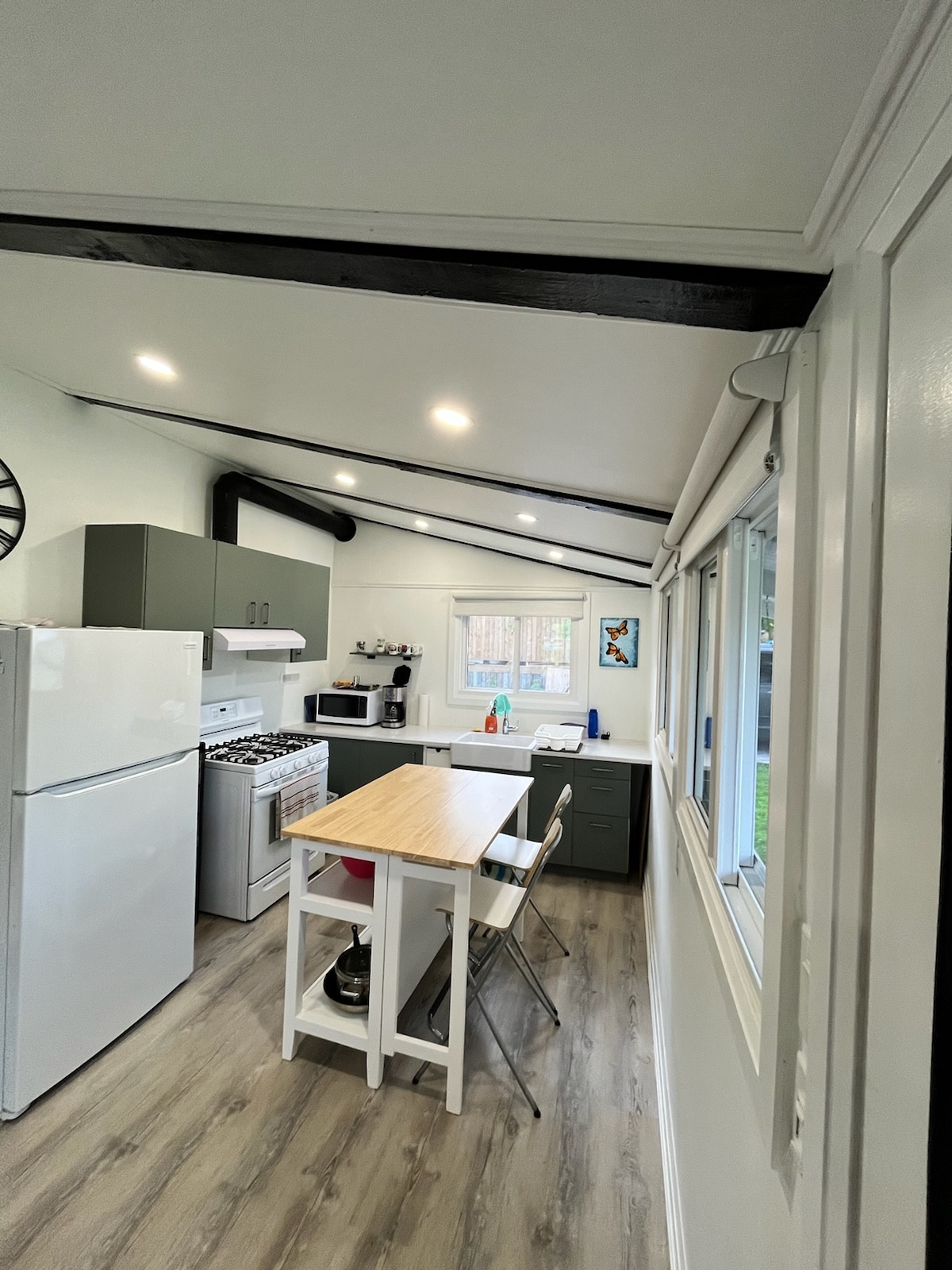 Uživajte u našoj potpuno renoviranoj kućici sa 3 spavaće sobe na obali jezera sa svijetlim dnevnim boravkom otvorenog tipa i potpuno opremljenom kuhinjom – savršeno za opuštanje i druženje. Napolju će vam se svidjeti jednostavan pristup jezeru, prekrasan pogled na vodu, 4 kajaka (2 za odrasle, 2 za djecu) s veslima i prslucima za spašavanje, roštilj, igre na travnjaku i ognjište na obali uz nezaboravne zalaske sunca. Napomena: Cijene uključuju najviše 4 gosta. Dodatni gosti plaćaju 35 USD po osobi, po noćenju.