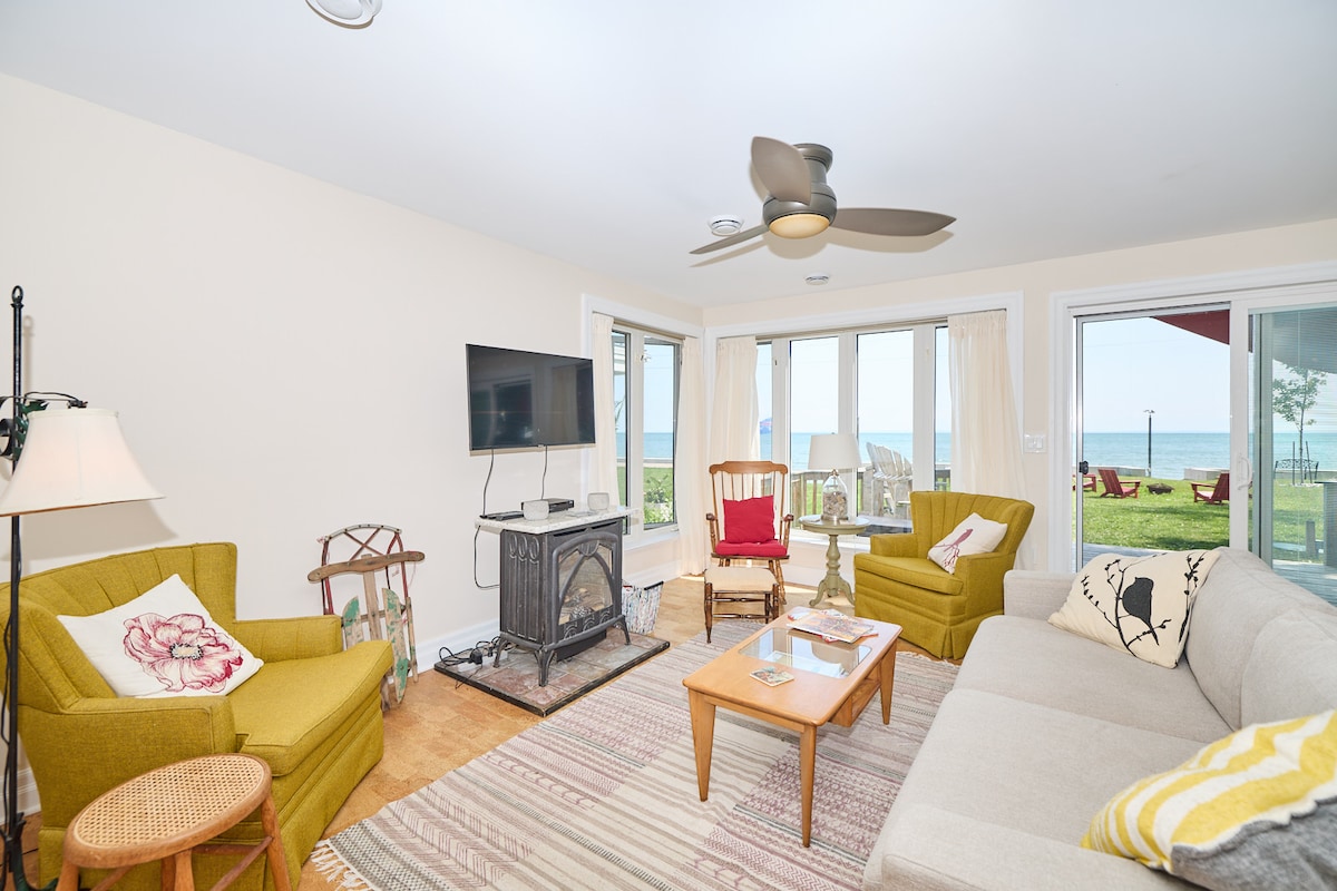 Ova svetla seoska kućica sa otvorenim konceptom ima prelep pogled od zida do zida na prelepom jezeru Eri. Uživajte u zadivljujućim zalascima sunca, opustite se pored ognjišta i zaspite na talasima. Nalazi se na privatnom putu, a lokalni restorani i prodavnice udaljeni su samo nekoliko minuta vožnje. Blizu lansiranja brodova i prelepe peščane plaže udaljene su samo nekoliko koraka. Savršeno mjesto za bijeg od svega za parove, porodice, prijatelje ili umjetničko utočište. VAŽNO: Pročitajte odeljak sa drugim napomenama:-)