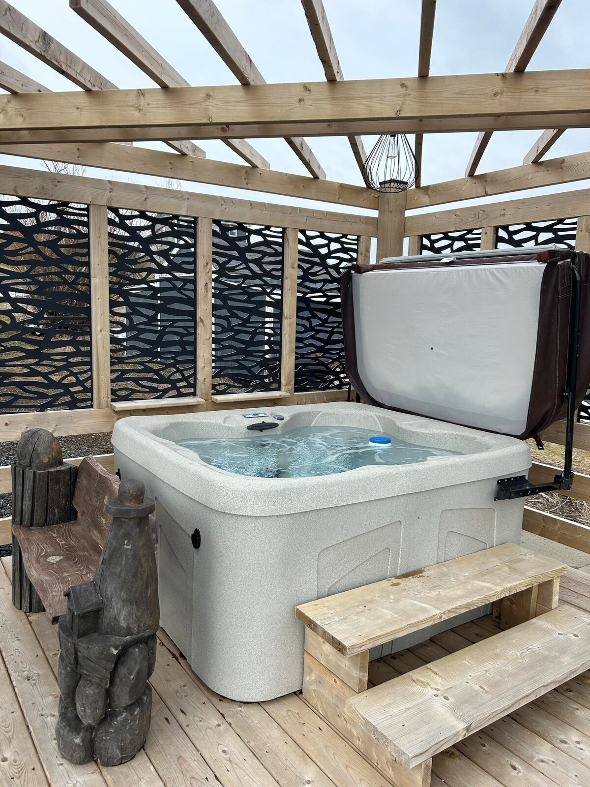 Ako su datumi koje ste tražili nedostupni, pošaljite nam poruku, provjerićemo da li je dostupna neka druga seoska kuća na istoj lokaciji. Prije nego što rezervišete, pročitajte naš kućni red. Uživajte u privatnoj hidromasažnoj kadi na otvorenom koja se nalazi direktno ispred vikendice, plinskom ognjištu, pješačkim stazama i vožnji kajakom do plaže na okeanu. Tu je i tuš na otvorenom sa toplom i hladnom vodom. Unutra ćete naći dizajnerski nameštaj od debla, LED kamin, brzi internet Bell FibreOp i 60-inčni Samsung TV.