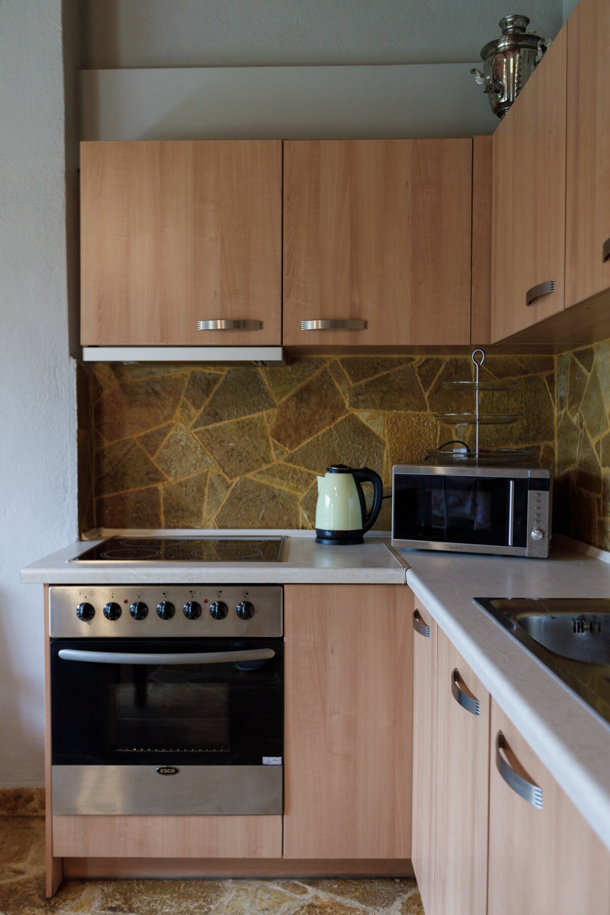 Napravljen uglavnom od drveta i kamena, sastoji se od kuhinje otvorenog tipa,dnevne sobe,kupatila i trpezarije, kao i spavaće sobe u kojoj se možete spustiti stepenicama. Kauč u dnevnom boravku se pretvara u bračni krevet. Nalazi se u tradicionalnom selu Mesini i u dvorištu vile Džoana. Obično se iznajmljuje kao komplementarni prostor vila za velike grupe i autonomne grupe. Najbliža plaža na 8 km. 12 km od Nea Kallikratia.