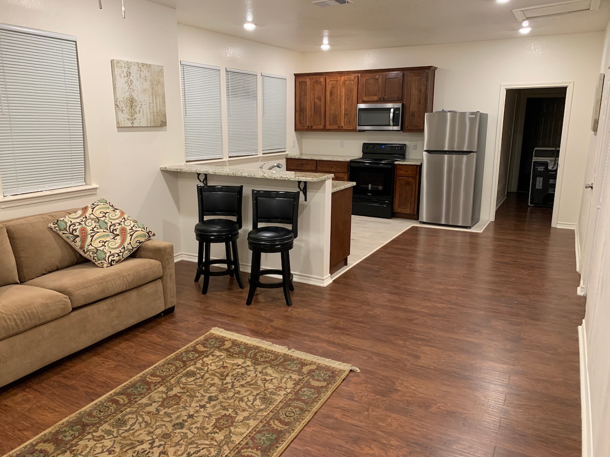 Zakoračite u udobnost ovog jedinstvenog minijaturnog doma smeštenog u mirnom području u blizini slikovitog jezera Čiroki. Obećava opuštajuće utočište u blizini regionalnog aerodroma Istočni Teksas, koja nudi prelepu bazu za medicinske sestre koje putuju, roditelje koji posjećuju studente Univerziteta Leturino i goste koji žele da istraže Longvju i njegove događaje, atrakcije i znamenitosti. ✔ Udoban život u spavaćoj sobi ✔ ✔ ✔ Pametni televizori u kuhinji ✔ Brzi Wi-Fi ✔ Besplatan parking ✔ mašina za pranje i sušenje veša