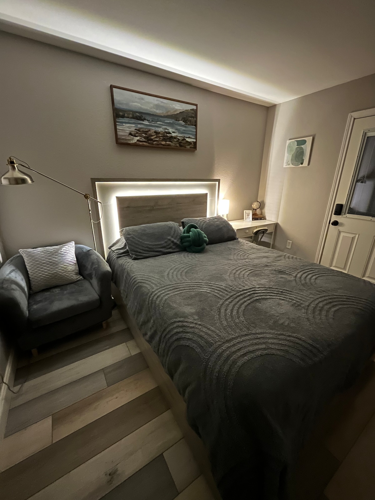 Opustite se u ovom elegantnom, privatnom studiju sa jednom spavaćom sobom za goste starije od 25 godina, idealnom za samostalne putnike ili parove koji traže udobnost i privatnost. Pažljivo uređen prostor uključuje bračni krevet, prostor za sjedenje, namjenski radni prostor i privatno kupatilo s luksuznim sadržajima. Iako je spojen sa glavnom kućom, studio je potpuno odvojen sa sopstvenim bezbednim ulazom kroz zajedničku garažu. Ovo je samo privatni studio, a ne cijela kuća za iznajmljivanje.