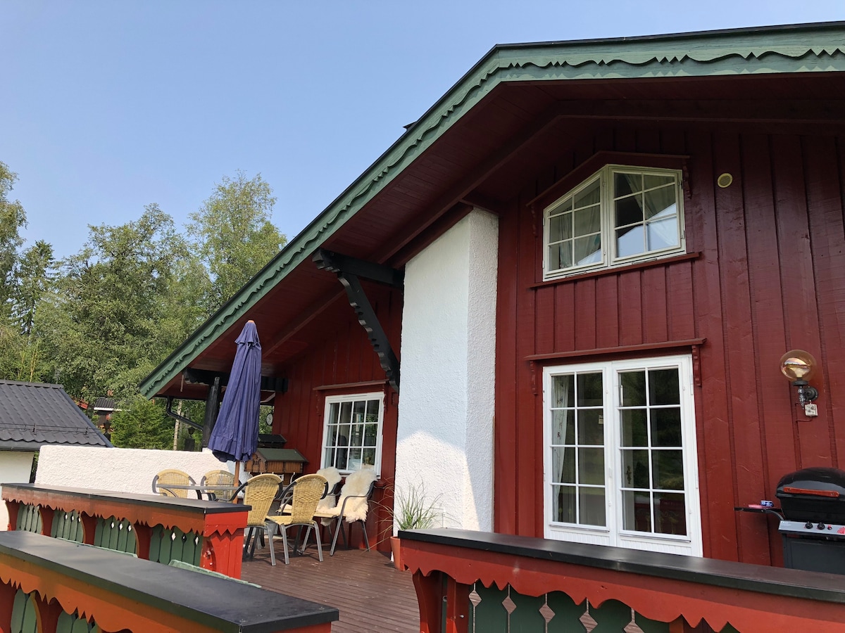 Ukusna porodična kuća u lancu, pored rivijere Mjøsa.