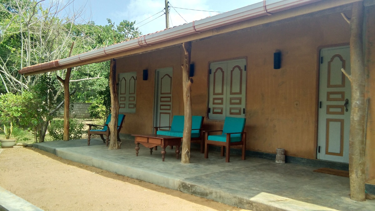 Eko šarmantni porodični apartman sa dve interventne dvokrevetne sobe sa 2 bračna kreveta. Obezbeđeno je sa toplinom, privatnošću i prostorom. Za parove, porodicu ili prijatelje. Terasa sa prostorom za sedenje i pogledom na baštu. Na granici NP Yala organizujemo odgovoran eko safari, iz područja s manje gužve i u pogledu divljeg života. Dijelimo udobnu/tradicionalnu atmosferu u kojoj su svi dobrodošli da se pridruže opuštajućem iskustvu u harmoniji sa prirodom i divljim životinjama.