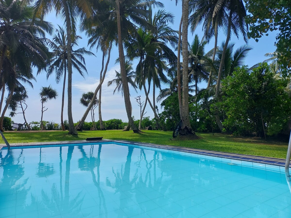 Otkrijte naš trokrevetni smještaj s bazenom i neobičnom kućicom na drvetu, na par koraka od jedne od najskrovitijih i netaknutih plaža Šri Lanke, Mawella. Ovo je jednostavna, ali prostrana vila u kojoj se možete opustiti, povezati s prirodom i doživjeti život na autentičnoj ribarskoj plaži. Takođe je fantastična baza za šira istraživanja Šri Lanke; od kupovine u tvrđavi Gale do posmatranja ptica, safarija, kornjača ili kitova, ulaska u surfersku scenu u Hiriketiji ili obnove uz ajurvedsku masažu.