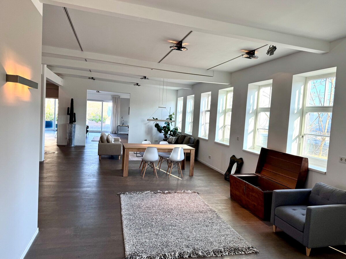 U staroj fabričkoj zgradi, usred Hamburga, nalazi se ova prelepa lokacija na 260 kvadratnih metara. Sjajni betonski podovi, stari fabrički prozori, zakrivljeni plafoni koji podsećaju na Njujork potkrovlje vas čekaju na boravak u Hamburgu. - Tri odvojene spavaće sobe (bez zavjesa) - Otvorena kuhinja za nekoliko osoba - Velika soba dužine 20 metara za male događaje - Vozom za 14 minuta /centar Hamburga - Automobilom za 7 minuta u Außenalsteru