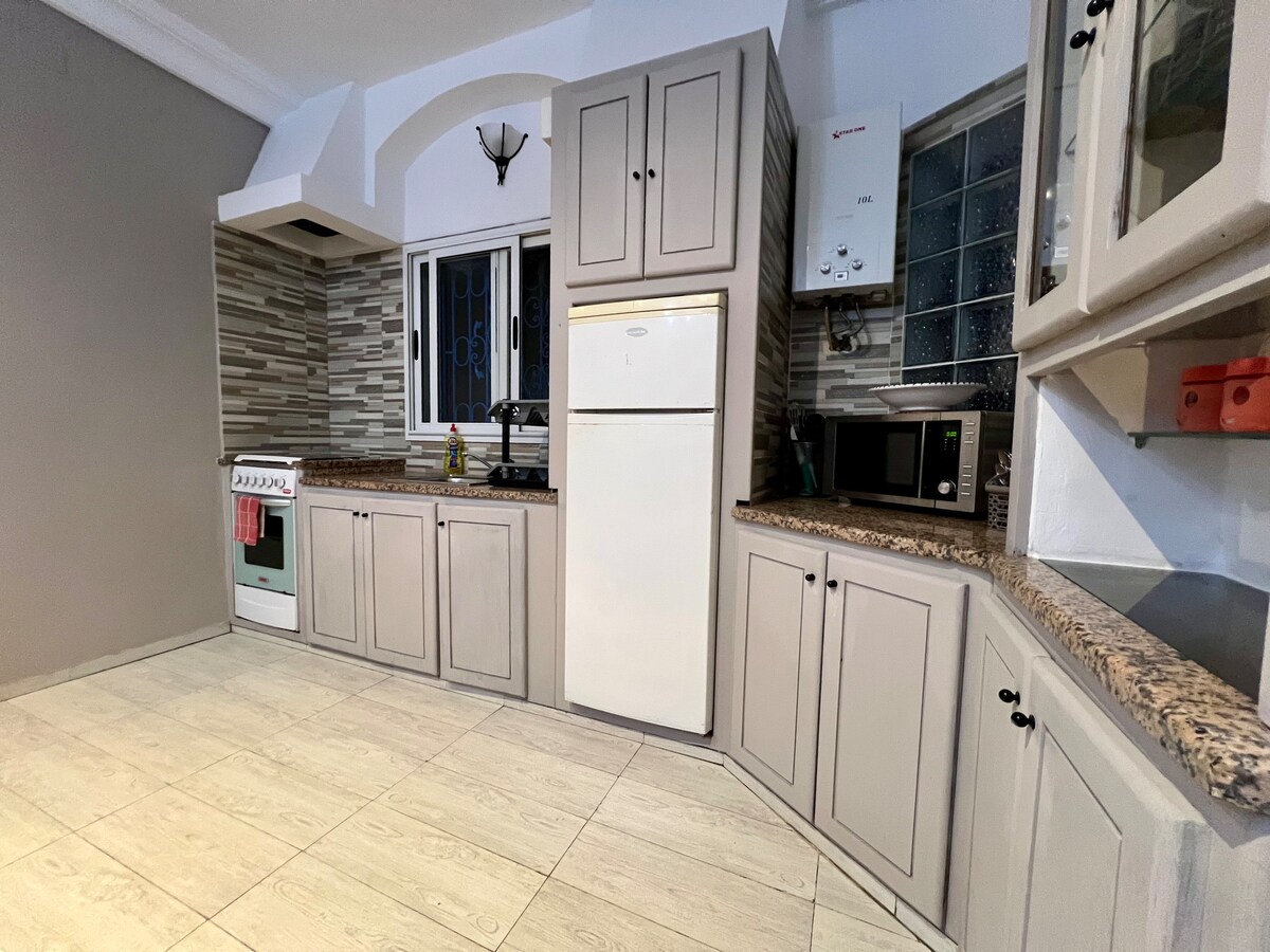 Udoban i potpuno renoviran dvosoban stan (dnevni boravak+2) idealno smešten između centra Hamameta i južnog Hamameta, odmah pored plažnog odmarališta Orangers. Udaljen samo 7 minuta hoda od plaže, ovaj svijetao i dobro opremljen sa klima uređajem u svakoj sobi. Stan nudi modernu udobnost u svakom pogledu. Ima privatni ulaz i nalazi se na prvom spratu, što osigurava i praktičnost i privatnost.