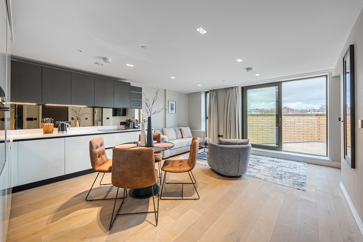 Accessed through a charming Victorian family home. This bright and intimate apartment offers a stylish retreat with a chic, monochromatic interior. Thoughtfully designed with impeccable attention to detail, the space features beautiful tiled finishes bathroom, graceful arched doorways, and characterful stripped wooden floors. Step outside to enjoy the sunny shared terrace — a perfect spot to relax and unwind in style.