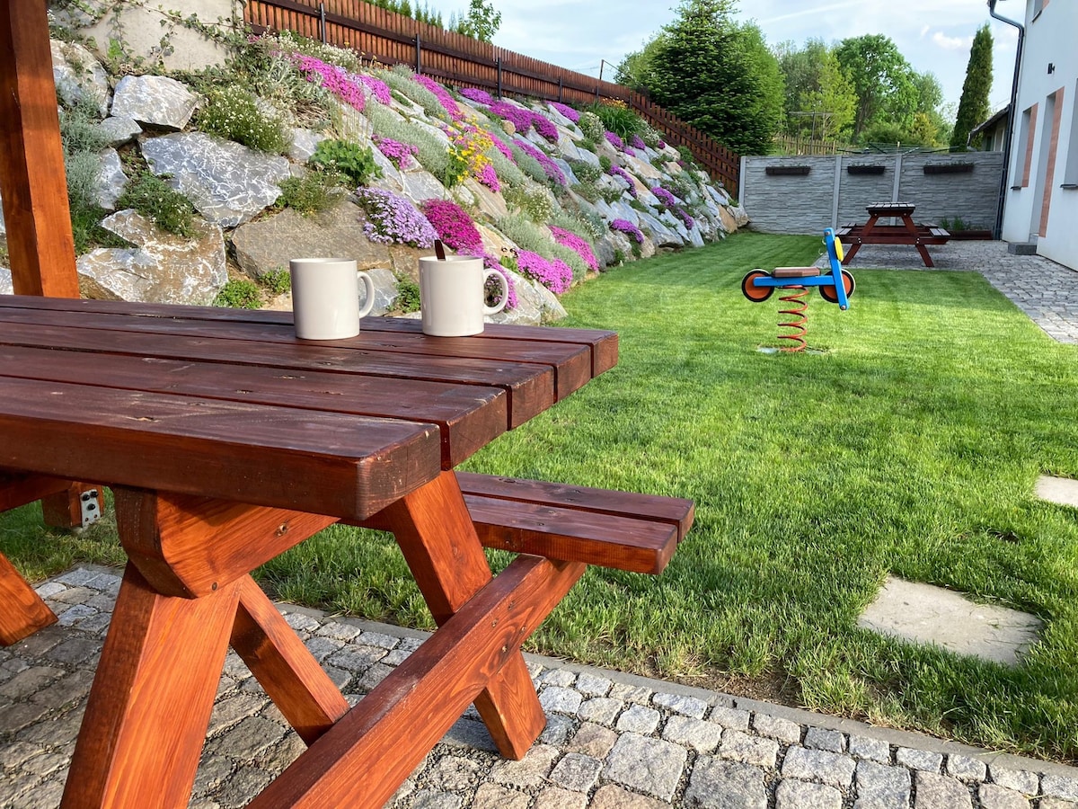 Naš stan se nalazi u srcu planina Jeseníky, u blizini baze brzih staza. Okružen je livadama i šumama, u potpunoj privatnosti. U blizini se nalaze kamenolomi i jezerca za kupanje, ruševine dvorca i prelijepe šetnje od vrata. Peške, biciklom, sa kolicima. Spa centar Jeseník nalazi se preko brda, ljubitelji kulture će cijeniti Tančínu u Račím údolí ili dvorac u Javorníku. Volite li dobru kafu i nešto dobro? U kafiću Elenor u Granitu, oni će se pobrinuti za vas.