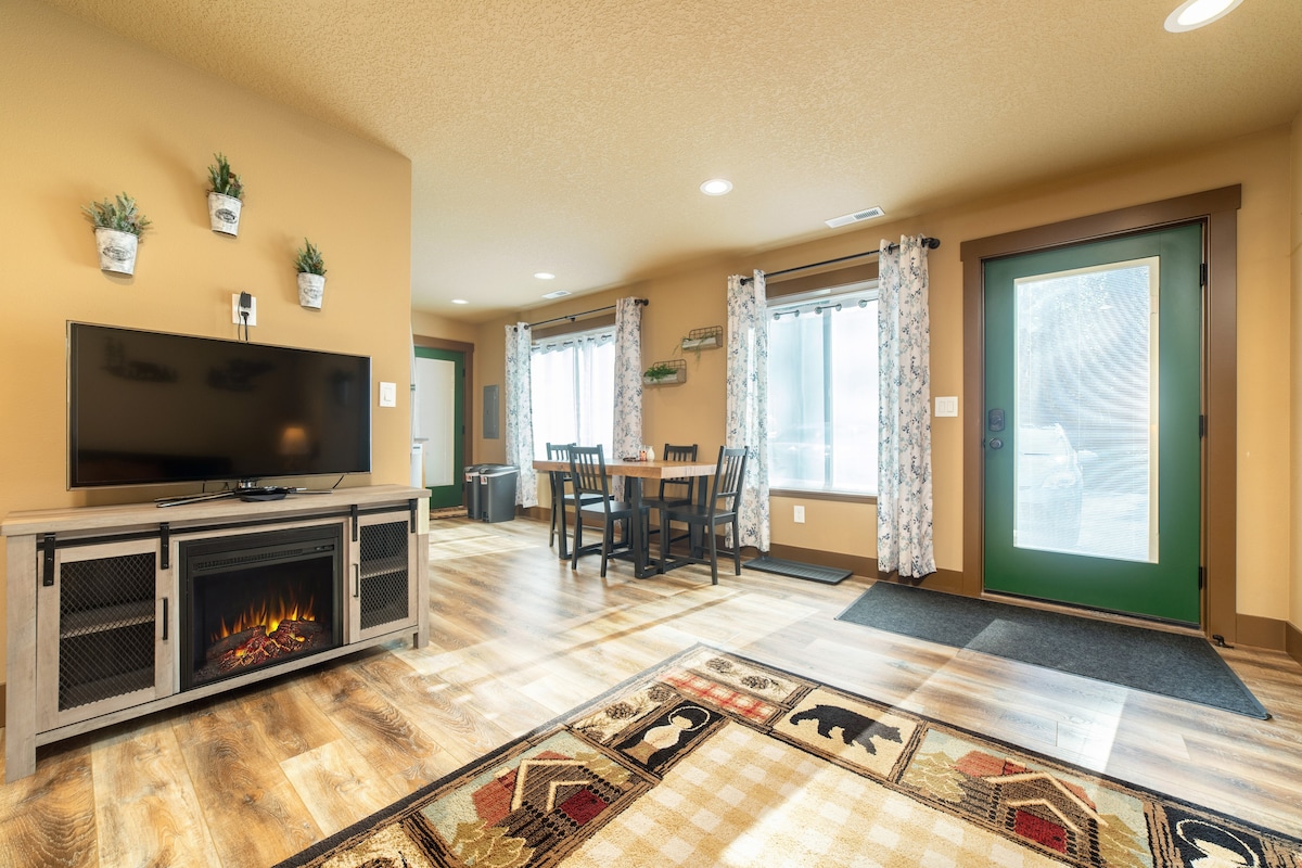 Naš veliki prostor (1500 kvadratnih stopa) (privatni pristup) ima spavaću sobu, kupatilo, dnevni boravak sa kaminom, hidromasažnu kadu, punu teretanu, kao i čajnu kuhinju sa frižiderom pune veličine, keurig, mikrotalasnu pećnicu, fritezu, toster, ringlu i vešeraj. Pametni televizori, viseće ležaljke i ognjište na krovu nalaze se u prostoru za zabavu na otvorenom. Prikladno za LGBT i BIPOC. Teretana, hidromasažna kada i vešeraj se dijele sa vlasnicima, ali gosti imaju prioritetan pristup. U blizini Mt Hood Wilderness (45 minuta) i centra Portlanda (15 minuta).