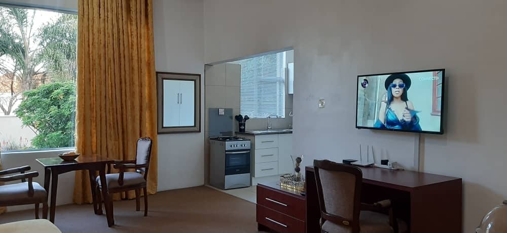 Apartman Executive u lisnatom prostoru sa prelepom dobro uređenom baštom, ognjištem i kuhinjom braai na otvorenom. Tu je DSTV i neograničen Wi-Fi sa čvrstim napajanjem, uključujući TV i svetla. Smještaj je besprijekorno čist sa svim modernim sadržajima. Vrhunski je. Obroci po vrlo razumnim cenama mogu se organizovati za duže boravke. Sve što treba da uradite je da se spakujete i opustite.