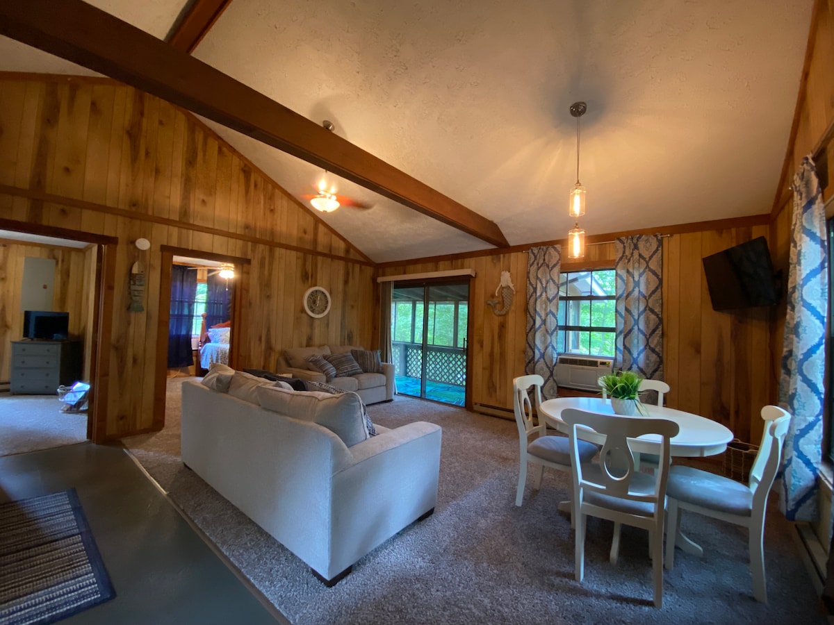 Zakoračite u šarmantnu oazu 1BR 1BA u blizini slikovitog jezera Rough River. Obećava opuštajuće utočište na samo nekoliko minuta od Nikovog pristaništa za brodove, živopisnog državnog parka, restorana, prodavnica, uzbudljivih atrakcija i znamenitosti. Divan dizajn i lista bogatih sadržaja ostaviće vas u strahopoštovanju. ✔ Udobna bračna soba + kauč za spavanje s bračnim krevetom Prostor za ✔ opuštanje ✔ Čajna kuhinja ✔ Terasa (ognjište, restorani, roštilj, salon) ✔ Prostor za rad ✔ Pametni televizori ✔ Wi-Fi ✔ Parking Pogledajte više u nastavku!