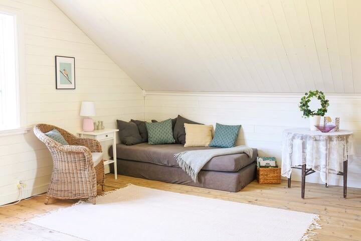 Dobro došli u naš dom! Nudimo svetao i prozračan stan u centru Härnösanda u slikovitom okrugu Östanbäcken. Stan ima dvije sobe, spavaću sobu i dnevni boravak (ukupno 59 m2) i nalazi se na drugom spratu naše seoske kuće. U spavaćoj sobi se nalazi bračni krevet, a u dnevnom boravku krevet na razvlačenje koji se može pretvoriti u bračni krevet. Nažalost, u dnevnom boravku nema vrata, ali smo postavili zavjesu koja se može navući. Parking je odmah ispred.