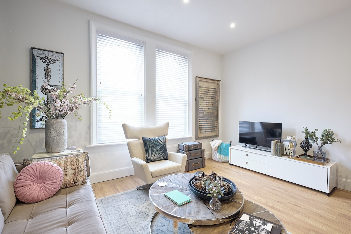 Prelijepo uređen, potpuno renoviran, dvoetažni trosoban stan koji stvara osjećaj luksuznog hotelskog apartmana „udoban, ali moderan” sa raskošnom opremom. To je uključivalo ugradni namještaj i detalje po mjeri s osvjetljenjem, oblogama, mješavinom prirodnog i umjetnog kamena sa zadivljujućom opremljenom kuhinjom, kupatilom i garderobom. Smješten u centralnom Harogejtu duž zapanjujućeg poznatog smještaja starog 200 godina.