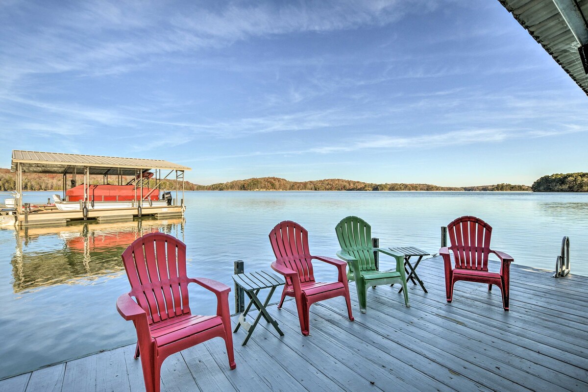 Uživajte u pogledu iz ovog jedinstvenog i elegantnog smještaja na jezeru Hartvel. U blizini I-85 i državnog parka Tugaloo u Lavoniji, Džordži. Natkriveno pristanište za brodove u dubokoj vodi uključuje daske za veslanje, stolice i podlogu za plivanje. Ognjište sa drvetom. Dovoljno prostora za parkiranje vozila i prikolice za čamac. Povedite porodicu, brod i uživajte na jezeru.