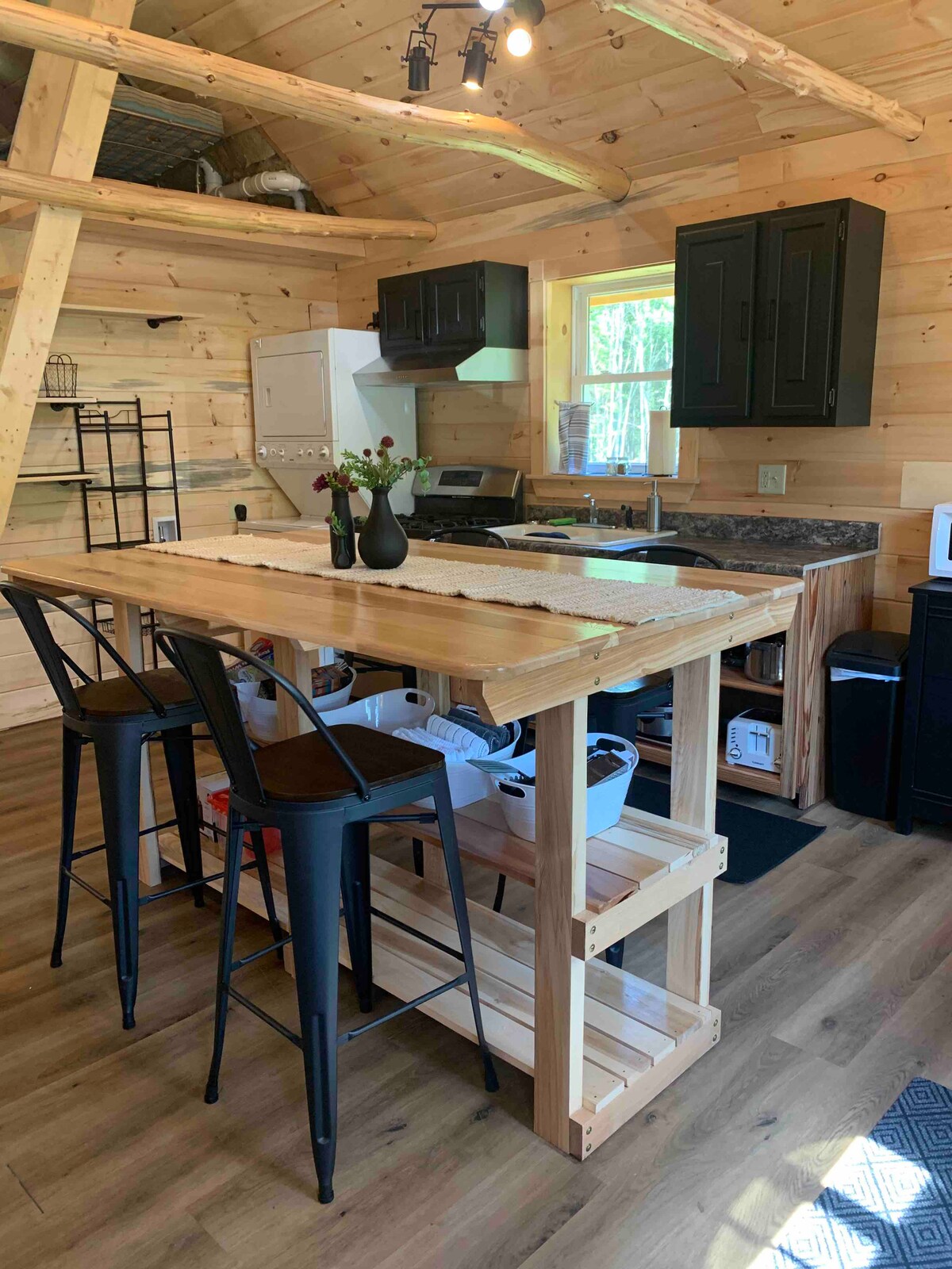 Nedavno smo kupili kuću u kojoj živimo i koja ima efikasan stan u pozadini. Udobna je i privatna. Kuća je stara i jedinstvena. Ranije je to bio dugoročni najam. Želeli smo da obezbedimo spokojni prostor u srcu Mejn Hajlends, raskršća centralnog Mejna. Uživamo u slikovitom području sa prelepim jezerima, višestrukim sistemima staza i stazama koje vode do 100 milja divljine Apalačke staze, jezera Loshed, najvećeg jezera u Mejnu i državnih parkova.