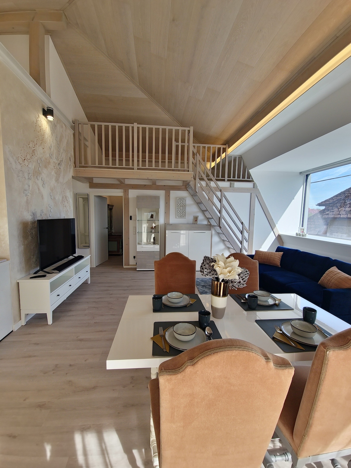 Moderan, svetao stan u potkrovlju sa privatnom krovnom terasom u istorijskom starom gradu Pasau. Veoma miran stambeni objekat, ali direktna veza sa centrom Pasaua. Tri ugla ispred ulaznih vrata. Parking u restoranu Römerparkhaus. Potpuno opremljena kuhinja sa aparatom za kafu, indukcijskim šporetom, rernom, mikrotalasnom rernom, mašinom za sudove. Kupatilo sa mašinom za pranje veša i kadom. 65" 4k Fernseher i brzi Wlan.