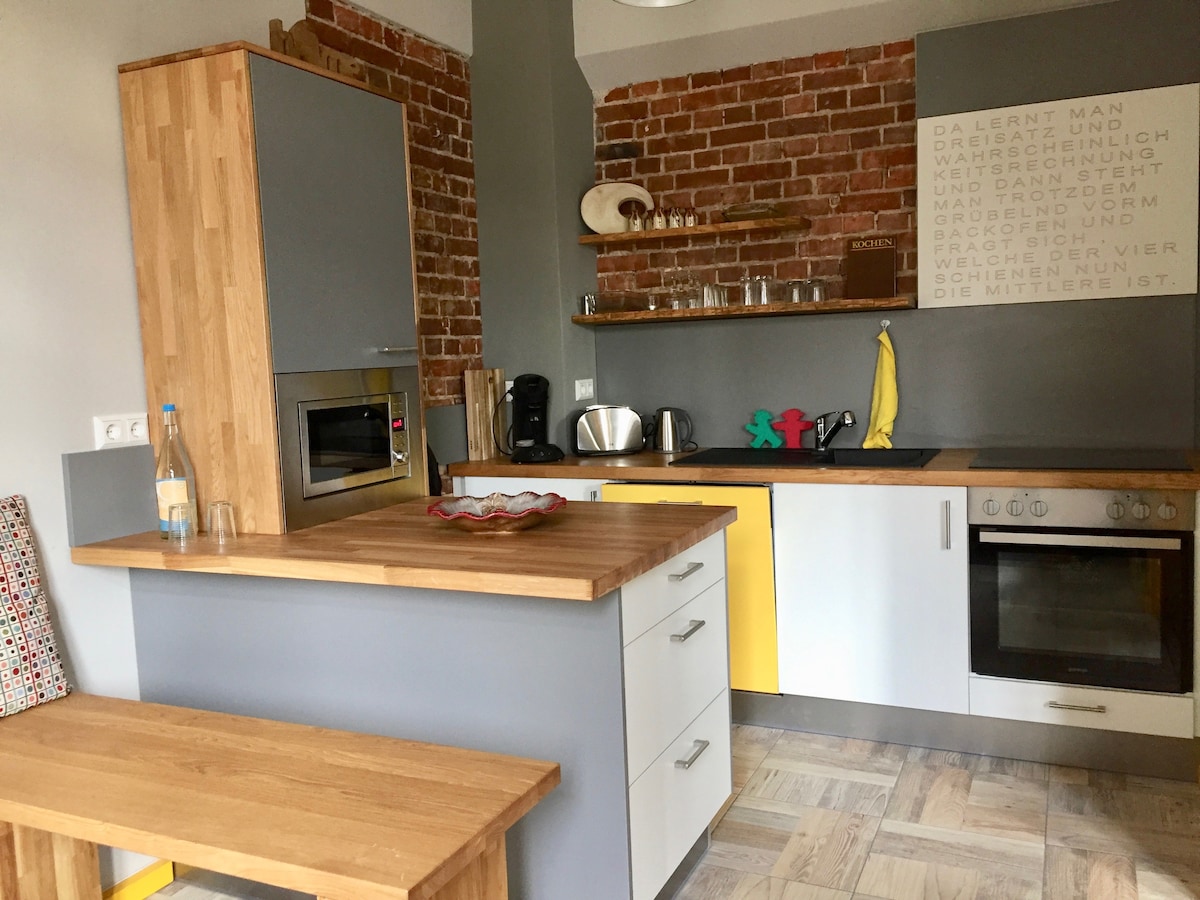STAN: prostran, elegantan, svijetao i udoban smještaj (1 spavaća soba) na gornjem spratu (s pristupom liftu) i balkonu okrenut prema jugu. Smeštaj je privatni deo našeg ogromnog objekta na krovu sa svime što vam je potrebno za nezaboravan boravak u jednom od najboljih kvartova Berlina. Udobni kreveti i prostor za hlađenje i večeru su u ponudi, nećete ništa propustiti! Hrana se može pripremiti u potpuno opremljenoj kuhinji (frižider, mašina za pranje sudova, šporet, aparat za kafu, mikrotalasna pećnica / roštilj, čajnik, toster itd.). Kupatilo sa kadom, veliki prozor, mašina za pranje veša Miele. Posteljina i peškiri su uključeni u cenu. DIZAJN: Arne Jacobsen Egg Chair + Ox Chair, Club Sofas, Chaissez Lounge, 60. lampe i još mnogo toga. TEHNOLOGIJA: TV ravnog ekrana, DVD plejer, stereo sistem, priključna stanica za iPod, radio. INTERNET: bežični LOKACIJA: Stan se nalazi u popularnoj četvrti Prenclauer Berg u popularnoj četvrti Helmholtz. Mjesto se nalazi pored Helmholca Kolvic Platza, srca okruga. Estetika okruga, sa obnovljenim zgradama i šarenom balkonskom kulturom, jedinstvena je i privlači ljude sa svih strana sveta. Ovo komšiluk je veoma pogodan za porodicu. Postoji nekoliko parkova, igrališta, bezbroj kafića, barova i restorana. Nalazite se u srcu Prenzlauer Berga, bivše istočne strane Berlina! Savršena povezanost sa javnim prevozom: Sledeća stanica PRENZLAUER ALLEE u 200m (Ringbahn): Sve glavne atrakcije kao što su Alexanderplatz, Friedrichstr., Oranienstr., Hackscher Markt, Museums Island itd. Odavde možete doći za 10-15 minuta.