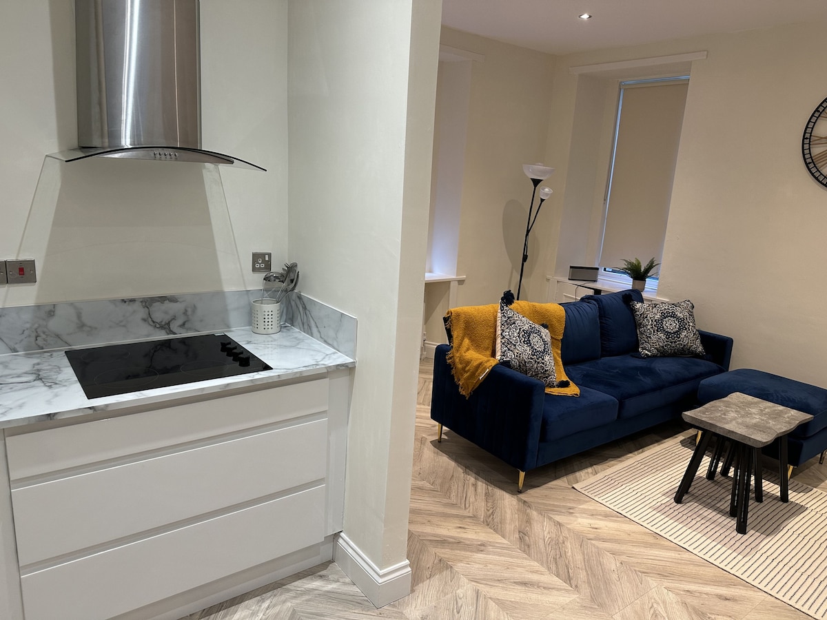Enjoy a stylish, comfortable experience at this peaceful, well-equipped flat. 10 minutes' walk from the centre of picturesque Hawick, in the heart of the Scottish Borders. Also popular and convenient for wedding guests at nearby venues such as Branxholme Castle. On a peaceful street with no through traffic, with raised elevation, commanding gorgeous bedroom views to the green hills of Wilton and Wilton Park and the setting sun, the flat boasts a host of modern amenities for a memorable stay.