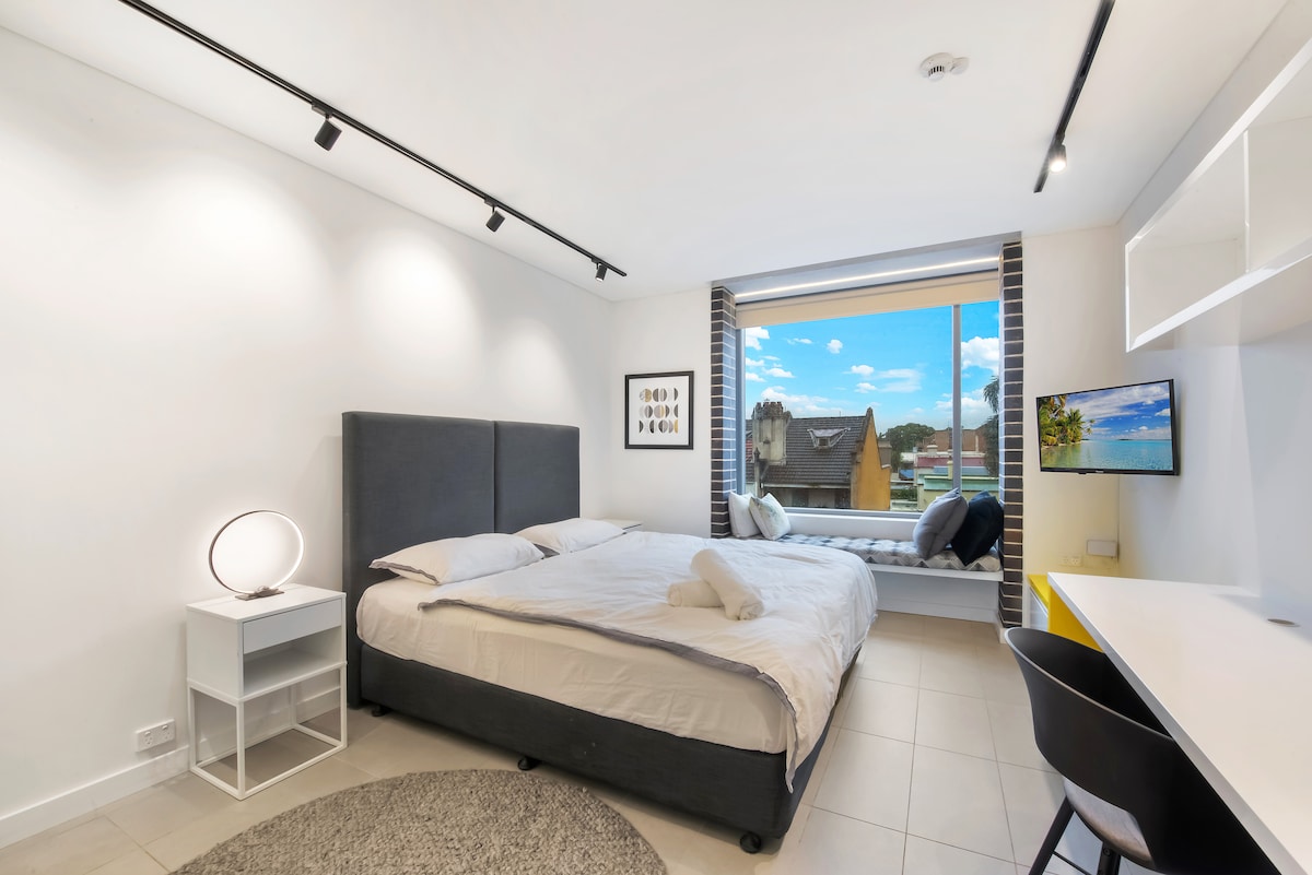 ✨Vaš smještaj za odmor u Sidneju✨ Tražite savršen odmor u gradu? Odsjednite u elegantnom studiju u Hejmarketu, samo 6 minuta od Glavne stanice, odakle možete lako da stignete do grada. Prošetajte 8 minuta do Hajd parka ili 15 minuta do Sidnejskog tornja „Tauer aj“ i uživajte u pogledima koji oduzimaju dah. Uživajte u autentičnim azijskim ukusima u Kineskoj četvrti, udaljenoj samo 7 minuta. Nakon cjelodnevnog istraživanja, opustite se uz opuštajuće kupanje u bazenu. Savršeno za parove ili putnike koji žele nezaboravan odmor u Sidneju.