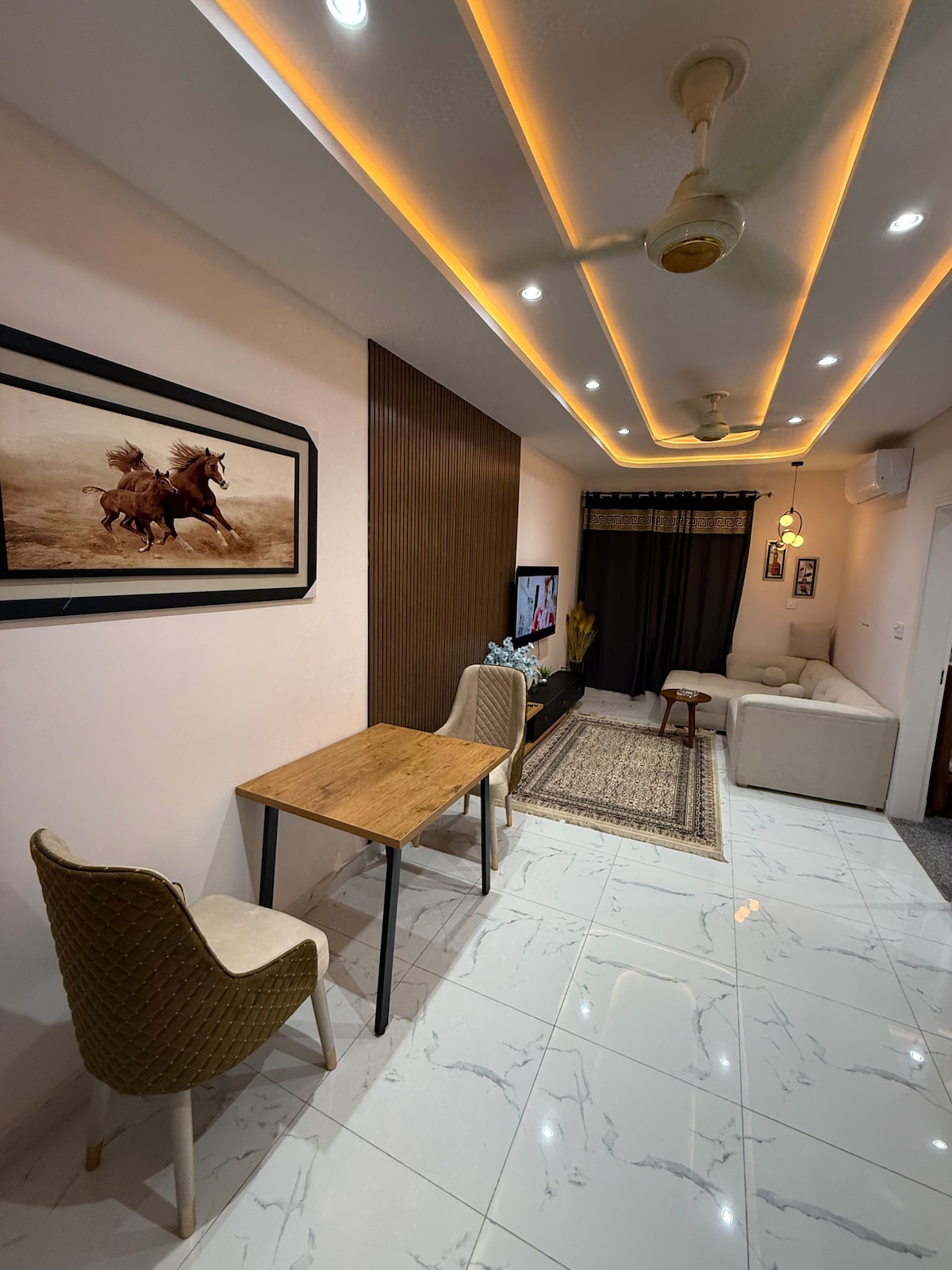 it is a luxry apartment with guest room. a family of 4 can stay easikly, It has all the modern facilities and is located on turbela road , Islamabad and peshawer is 45 minutes driving. fishing and sight seeing Guest can enjoy country living and as this is located next to marriage hall and shopping plaza you will enjoy a tradional marriage meal without any charge, Go to fishing the local people will take to sind river which is close by, or visit tarbela dam which is 6 miles away.