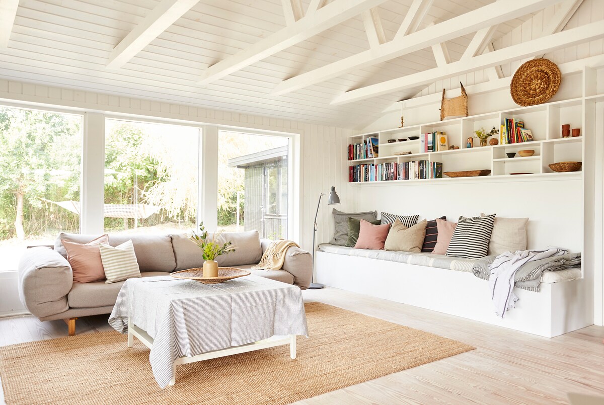U Vejby Strandu na prelijepoj sjevernoj obali Zelanda (u blizini Tisvildeleja), ova jedinstvena ljetnja kuća koju je dizajnirala arhitekta iz 1977. godine (renovirana 2023. godine) smještena je na prirodnoj parceli od 3000 m2 okruženoj drvećem. Kuća od 200 m2 se stapa sa mirnim okruženjem sa šarmantnim travnatim krovom. Savršen za šire porodice ili dvije porodice, nudi prostrane sobe i lični, retro dekor. Kuhinja-blagovaonica ima visoke plafone sa izloženim gredama, a dekoracija je pažljivo izvedena.