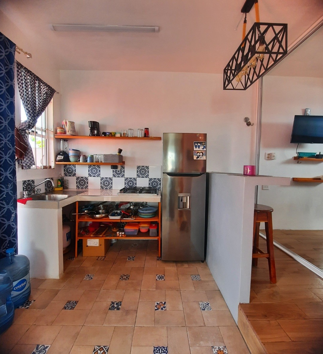 Stan na spratu, hipi/vintidž stil. 2 spavaće sobe, 2 kupatila. Kuhinja, trpezarija, prostor za doručak i spoljašnja terasa sa osvijetljenom pergolom. Parking u susjedstvu udaljen 3 kuće. Prelepo i urbano, 20 minuta od centra grada. Javni prevoz je konstantan. Pododjeljenje je neobično, u blizini Oxxo-a, supermarketa Soriana, parka, terena, crkve. Dobro došli.