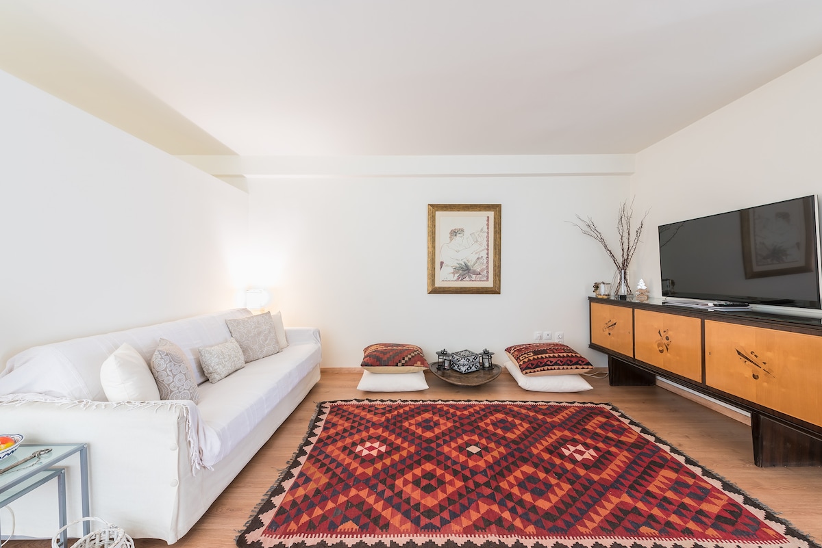 Elegantan stan u Atini, u vlasništvu i dizajnu Neta Dror, dizajnerica i umjetnica koja je prožela prostor svojom ličnom vizijom. Ovaj stan ima jedinstven prostor koji kombinuje stare i nove elemente. Stan ima veliki dnevni boravak sa udobnim kaučem, trpezarijskim stolom i kuhinjom sa svim sadržajima. Spavaća soba ima udoban bračni krevet i skriveno kupatilo koje iznenađuje i uživa. Ovaj stan je više od mjesta za spavanje, to je mjesto koje možete da doživite.