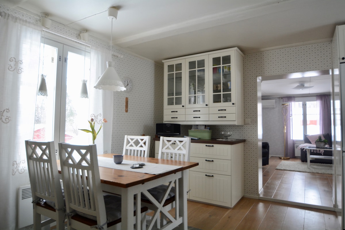 Povedite porodicu i opustite se u ovom mirnom i slikovitom smeštaju u selima reke u Ostrobotskom selu. Ovaj smeštaj je pogodan i za kratak boravak, kao i za duži boravak. Kuća ima opremljenu kuhinju i mašinu za pranje veša itd. Sauna i tuš su u zajedničkom prostoru u podrumu. Napolju je prelepa bašta. Problem sa vazduhom naveden u jednom utisku je rešen, a neprekidno dobar kvalitet vazduha je osiguran sistemom za filtriranje vazduha