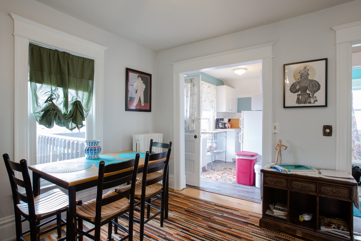 Ovo je miran umjetnički dom u srcu Uptowna. Volimo klasičnu muziku, džez, mačke, progresivnu politiku i baštovanstvo. Studenti, akademici, vizuelni umjetnici ili muzičari mogu smatrati ovaj prostor privlačnim. Može se pohvaliti trpezarijom/čajnom kuhinjom; prostorom za rad/igru/spavanje i zauzima cijeli 3. sprat mog doma. Pored zajedničkog kupatila na 2. spratu, u suštini je privatan i odvojen od ostatka kuće. Potpuno je namješten i savršeno opremljen za produženi boravak.
