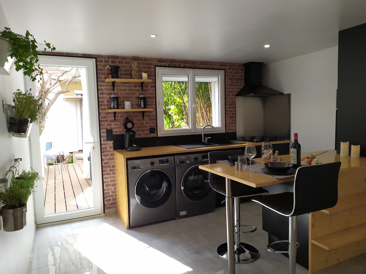 Malo mirno utočište usred vinograda. Nalazi se u pomoćnoj zgradi bivšeg Gare de Ribaute i nudimo vam da odložite torbe. Zgrada izgrađena 1875. godine, potpuno renovirana u duhu minijaturne kuće. Naći ćete modernu udobnost dok se na vrijeme prevozite sa starinskom i sofisticiranom dekoracijom. Ova seoska kuća od 20 m2 će zavesti svakoga ko traži autentičnost, karakter i mirnu atmosferu.