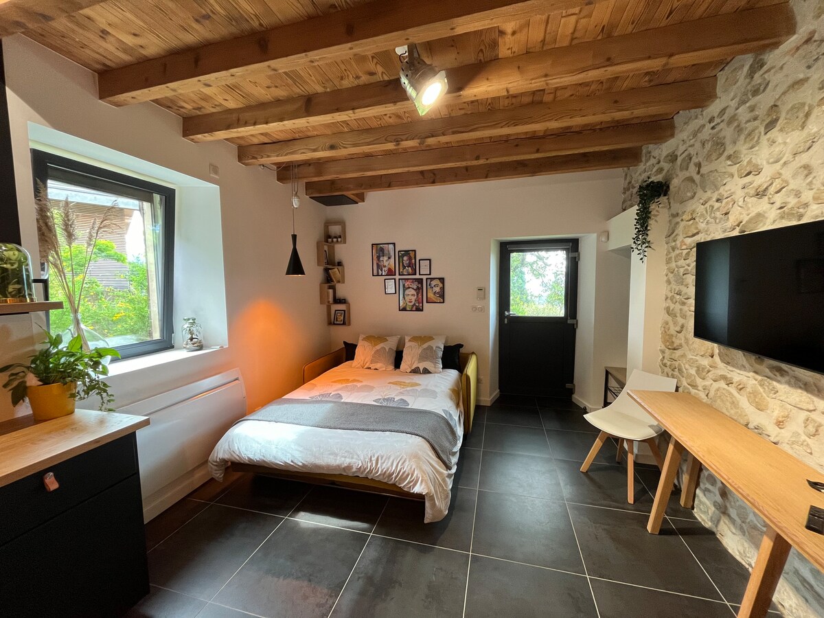 Uživajte u miru i prirodi u udobnom studiju blizu planina. Selo Herbeys nalazi se na 550 m nadmorske visine, na južnom brdu, samo 12 km od Grenobla, 5 km od Uriage-a i njegovih termalnih kupatila i 23 km od Chamrousse, skijališta masiva Belledonne. Ima privatnu terasu, kupatilo odvojeno od toaleta, privatne prostore. Pješačke staze. Selo je mirno za mirnu noć!