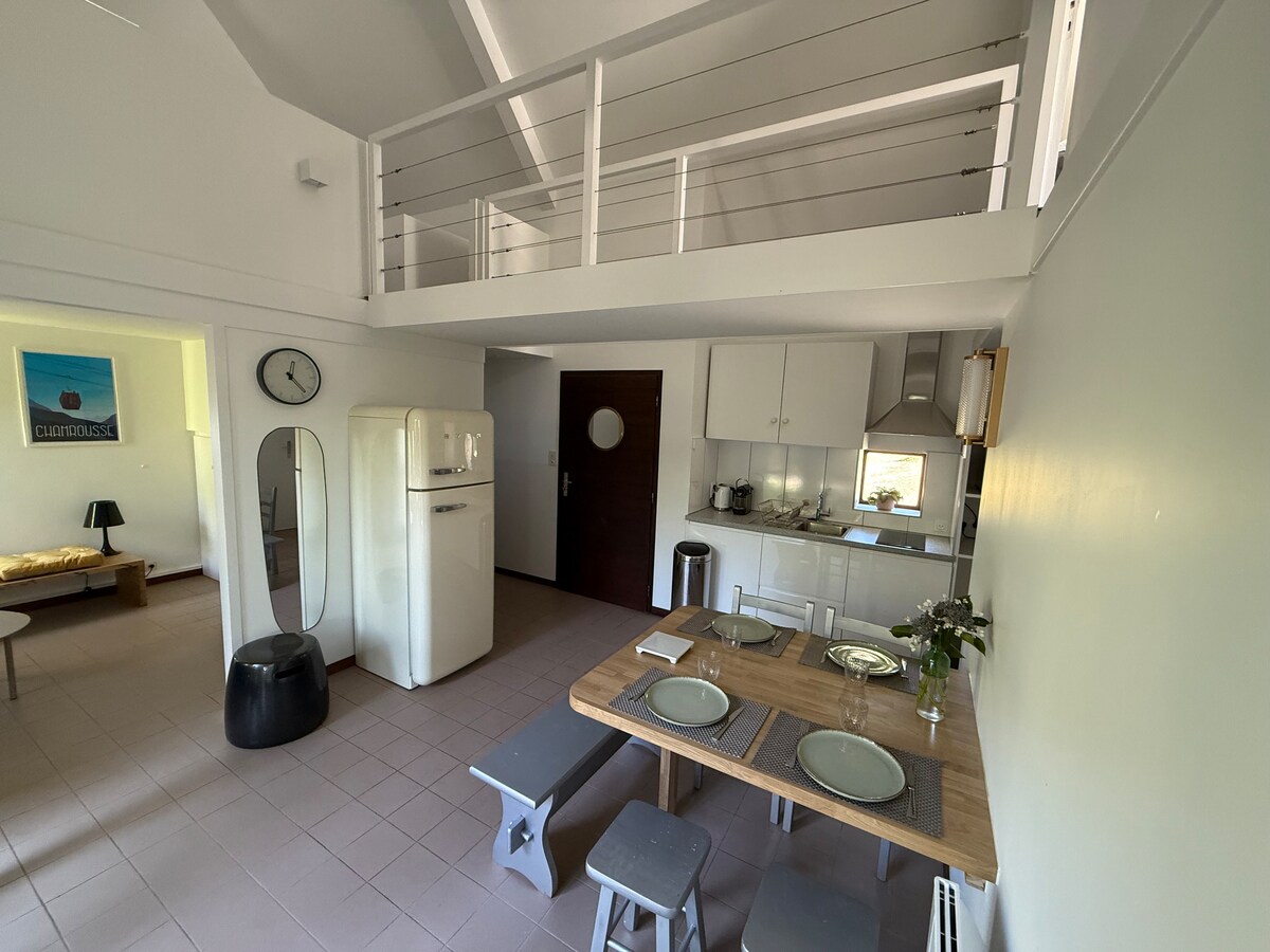 Ove zime otkrijte savršeno mjesto za opuštanje sa voljenom osobom! Ovaj dvospratni stan u potpunosti renoviran od 2023. godine, topao i u čahuri, savršen je za prijatan provod za dvoje. Bilo da želite da poklonite savršen poklon svojoj boljoj polovini, da se opustite u spa centru ili da posjetite Grenobl i njegove prelijepe pješačke staze, ovo mjesto je za vas!