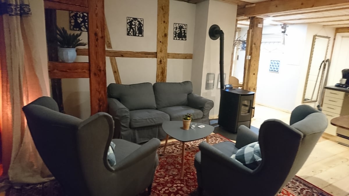 Stan je nedavno izgrađen u staroj seoskoj kući (iritantna 1833.). Tokom pripreme smo vodili računa o korišćenju što je moguće više prirodnih građevinskih materijala (drvo, glina, konoplja). Zidovi pregrade su osmišljeni kao zidovi od kamiona. Dnevni boravak čini sobu sa kuhinjom. Stan ima oko 60 m² i nema prepreka.