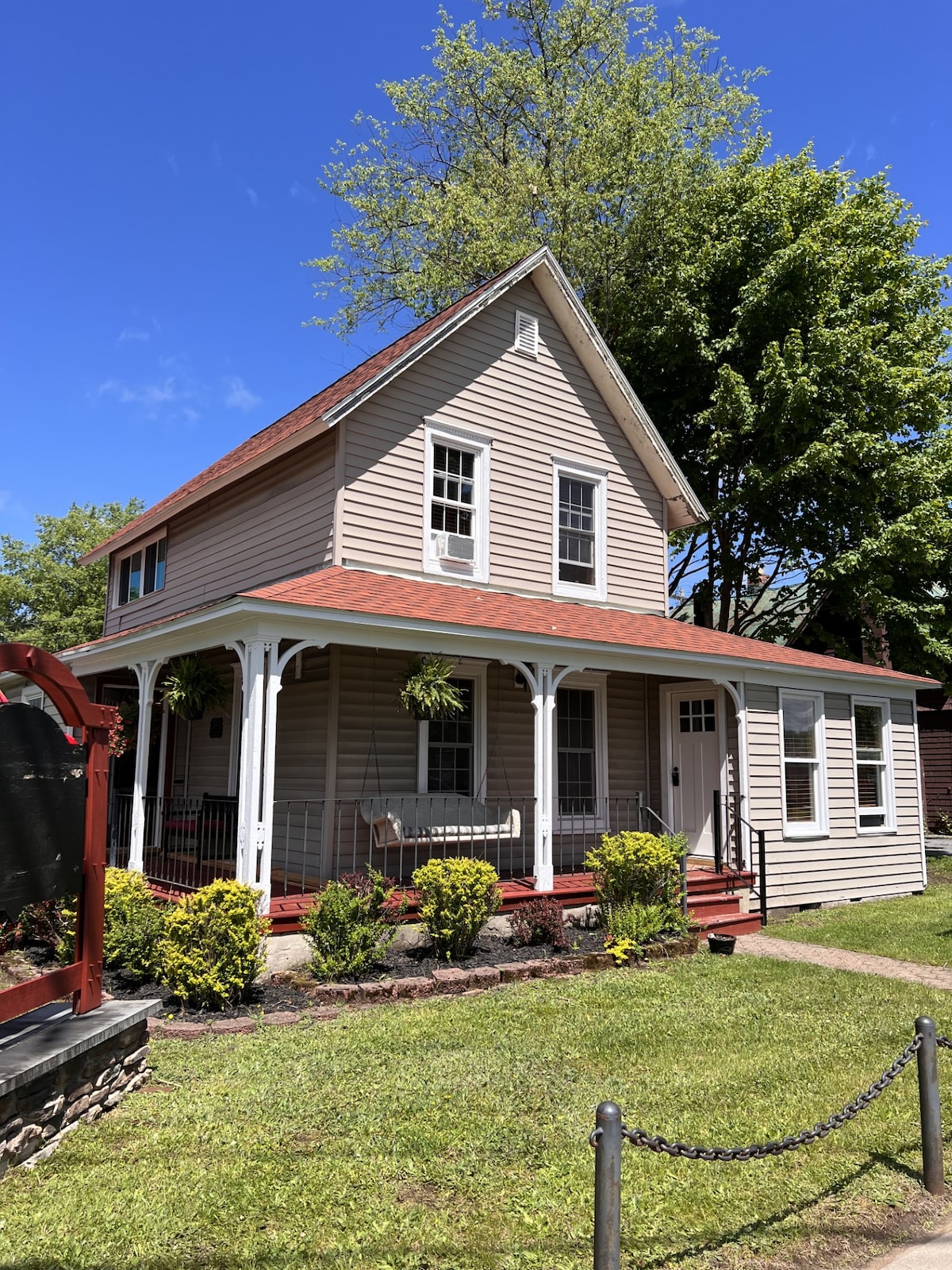 Dobro došli u naš Neck of the Woods! U ovoj jedinici sa 2 kreveta/1 kupatilom na spratu udobno će spavati 5 osoba, ali može da spava 6. Jednostavna otvorena kuhinja i dnevni boravak pružaju dovoljno prostora za uživanje. Sa gornjeg balkona pruža se predivan pogled na krave koje pasu, dok naš kameni kamin u dvorištu i unutrašnje dvorište imaju najbolji pogled na prelepe zalaske sunca. Nalazimo se na 25 minuta od Kuperstauna, 60 minuta od Olstar Vilidža, 15 minuta od Herkimera i 25 minuta od Jutike! Smještaj za četiri sezone. .