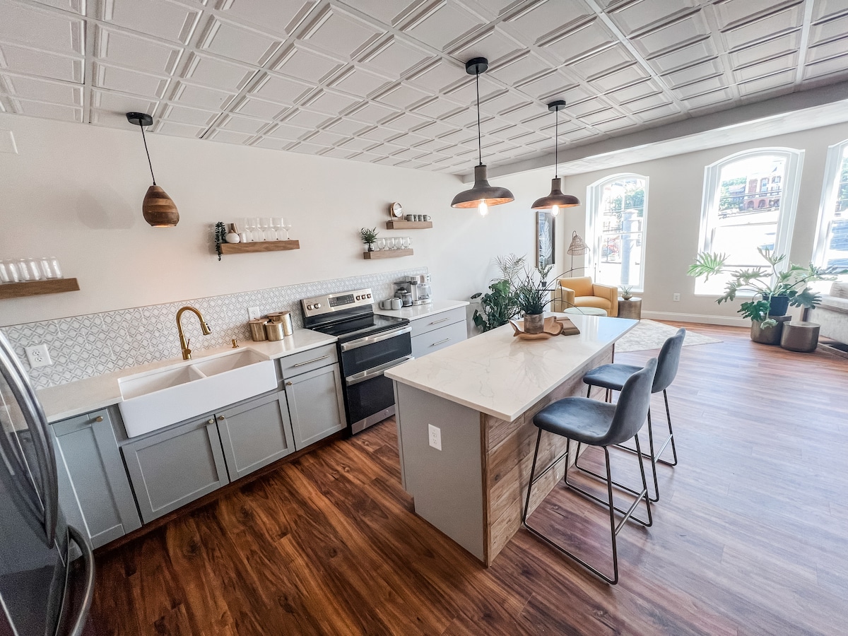 Ponovo se povežite sa prirodom u ovom nezaboravnom utočištu. Pobjegnite u naš renovirani ambar na eko-paradise od 44 hektara. Doživite modernu seosku kuću za život sa plafonima od 25 stopa, sjajnu sobu sa prelepim pogledom, potpuno opremljenu kuhinju, bračni krevet u džinovskoj spavaćoj sobi u potkrovlju i udobne plinske šporete. Pješačenje, kajak ili riba na jezeru od 100 hektara, lonac za divlje bobice i rampe u sezoni ili idite na skijanje na planini Elk niz put. Jedinstveni spokoj i rustikalni, prirodni luksuz u divljini Pensilvanije.