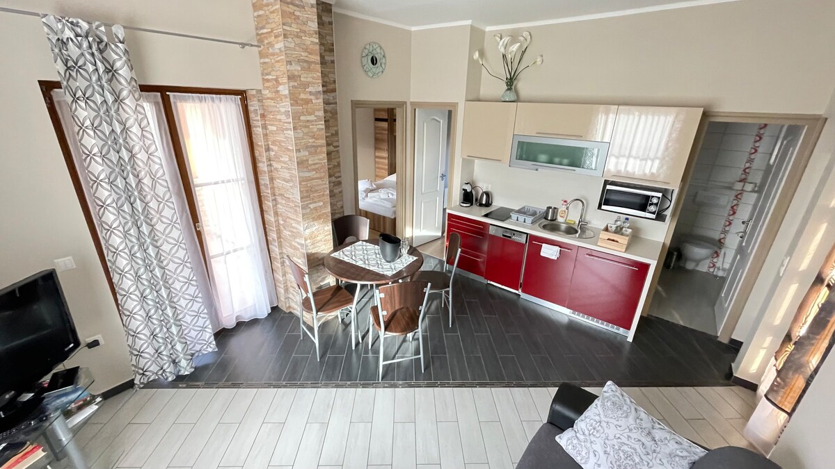 Central Balaton panoramska moderna apartmanska kuća sa dvije odvojene jedinice. Naš stan na spratu, 80m2, AZUL za 8 osoba (iznajmljen sa stanom ONYX za 6 osoba) je omiljeno mesto za timske graditelje, rođendane, prijatelje! Naši gosti preferiraju udobne krevete, prostrane trgove, modernu mehanizovanu opremu, dvostruku panoramu sa pogledom na jezero Balaton i Badacsoni, kao i do plaže i centra grada možete stići za nekoliko minuta hoda.