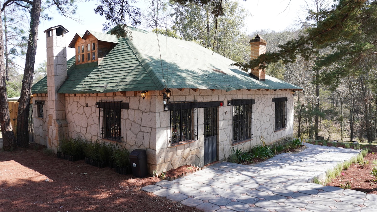 Predivna brvnara koja se nalazi u šumi na periferiji čarobnog sela Real del Monte, izgrađena u jednom od rudnika starog britanskog rudarskog grada, idealna za porodice i grupe prijatelja . Njegova privilegovana lokacija nalazi se 17 minuta od Pachuca, u neposrednoj blizini Magical Villages of: Mineral del Monte 5 minutes away, Huasca de Ocampo 20 minutes away and Mineral del Chico 30 minutes away. Ima kamin i pergolu sa roštiljem i ognjištem, kao i nevjerovatan pogled na planine.
