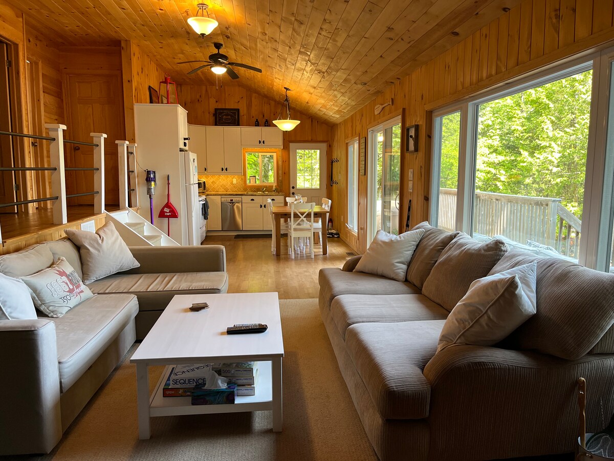 Seoska kuća je šarmantna kanadska seoska kuća sa okvirom smeštena na mirnoj obali prelepog jezera Južna Portage u Haliburtonu u Ontariju. Dizajniran sa prozorima od poda do plafona, uživaćete u predivnom pogledu i suncu sa bilo kog mesta na imanju. Naš kamin će vas sigurno zagrijati i udobno u tim hladnijim noćima ili odabrati vatru na otvorenom i opustiti se pod zvijezdama. Za one koji moraju da rade, Bell Fiber Optics će vam olakšati.