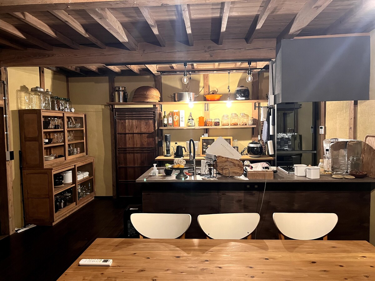 Našu kuću je ponosno izgradila naša porodična građevinska kompanija. Izrađen od japanskog drveta domaćeg porijekla, sadrži tradicionalnu tatami sobu i predivno spaja japanske i zapadne arhitektonske stilove koje je nekoliko japanskih medija predstavljeno na TV-u. Doživite najbolje od oba svijeta tokom vašeg boravka.