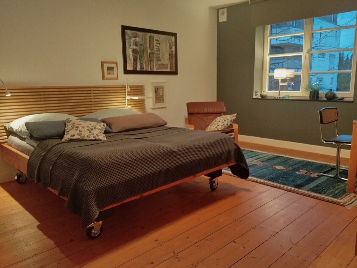 Ferien, Messe, Geschäftsreisen, kleine Fotoshooting (nur auf Anfrage), Wochenendurlaub... Gefällt Ihnen das Andere, Besondere? Dann liegen wir auf einer Wellenlänge. Die komplett sanierte Degenfabrik bietet Ihnen ein Ambiente, das die Zeit ein wenig langsamer laufen lässt. Parkplatz vorhanden, 10 bis 15 min zur City, diverse Restaurants und Geschäfte, Regionalbahnanbindung. Die Sportanlage liegt hinter dem Haus. Im selben Gebäude betreiben wir eine Kunstgalerie, die gerne besichtigt werden kann.
