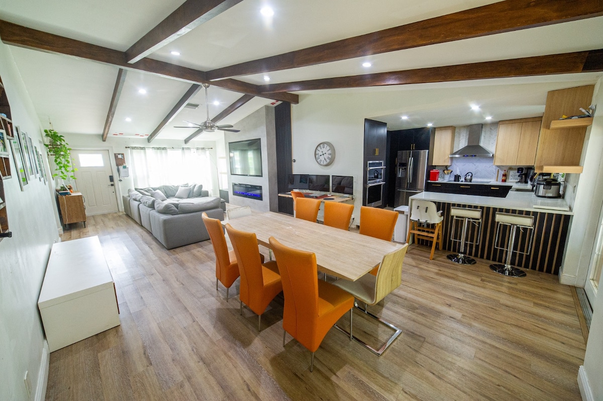 Privatni tropski bijeg savršen za porodice i prijatelje da napune baterije. Opustite se pored bazena sa slanom vodom (grijanje je opcionalno), roštiljajte pored vode ili se zabavite u igraonici sa stolnim tenisom, košarkom i još mnogo toga. Sa 5 kreveta, 2 kupatila, kompletnom kuhinjom, pametnim televizorima i brzim Wi-Fi mrežom, ova mirna oaza u Boka Ratonu udaljena je nekoliko minuta od plaža, parka Mizner i vrhunskih restorana. Usporite, uživajte u svakom trenutku i otiđite s osjećajem da ste bolje nego kad ste došli – ovaj dom je stvoren za to.