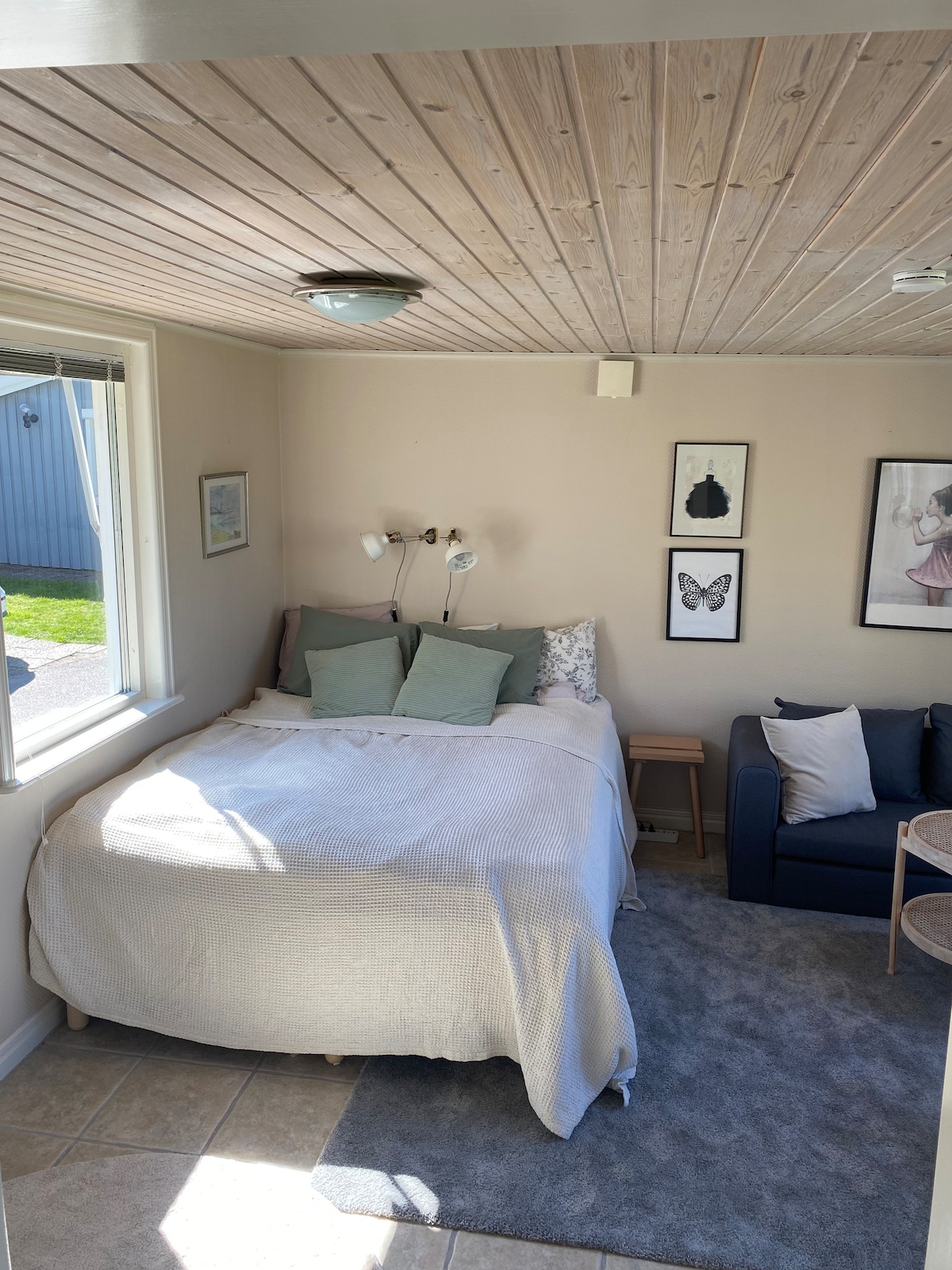 Naša mala gostinjska kuća je udobna i mirna, na kraju „ulice“. Jednostavna je, estetička i lako se sviđa. Veranda vam daje mogućnost da pogledate brod u prolazu za Dansku i Geteborg. Ako volite da vas inspirišu duge šetnje, ovo je savršeno mesto za vas. Imamo nekoliko restorana na ostrvu i pomoći ćemo vam da nađete najbolja mesta za kupanje, šetnju i jelo. Mirno i blizu prirode.