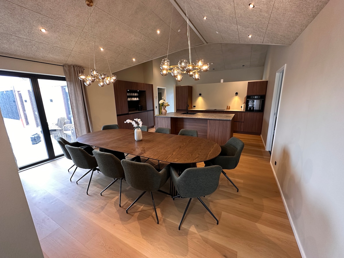 Opustite se sa porodicom i prijateljima, samo 300 metara od Sjevernog mora i kratkom vožnjom/šetnjom do atmosferskog centra grada Løkkena (oko 1,2 km) Kuća, površine 151 m², ima pet dobrih soba i dva kupatila. Dva velika potkrovlja kao dodatni prostor za spavanje ili za udobnost. Vaš sopstveni velnes površine 46 m² sa bazenom sa ugrađenim trenerom za plivanje, spa centrom i saunom. Velika terasa okrenuta prema jugozapadu za opuštanje, gdje možete sjediti i slušati talase Sjevernog mora. Veliki zimski vrt sa grijalicom za terasu za uživanje u dugim večerima.