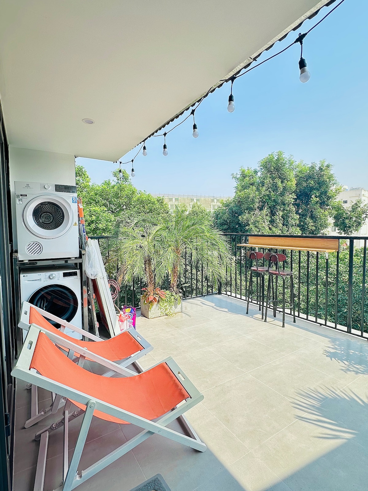GREEN is a 40 m² apartment perfectly situated in Hanoi’s Old Quarter. Located on the 3rd floor, it opens onto a lush shared terrace for a peaceful retreat above the bustling streets. You’re just a 1‑minute walk from Hoan Kiem Lake, the lively night market and the famous Ta Hien Street. Please note: music and street noise from Hoan Kiem Walking Street may be heard on Fridays through Sundays between 7 PM and 11 PM. Enjoy exploring the city from this central, leafy oasis!